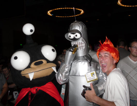 The Futurama panel was one of the hot tickets at this year’s San Diego Comic-Con. The rumor was that the line to get in circled the building twice. But I had a job to do and with the help of my magical press badge, I was able to make my way in without a hitch. After a brief glimpse at some of the fans dressed up as Fry, Bender, Leela, and a girl in a very impressive Nibbler outfit, I grabbed a seat and prepared myself for what was sure to be an intriguing conversation.
