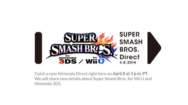 [Original] Nintendo has announced that it will be airing a new Nintendo Direct presentation next week on Tuesday, April 8th. It'll be focused on the company's upcoming multiplayer brawler, Super Smash Bros. Wii U/3DS.