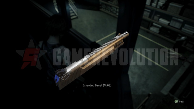 You’ll find the extended barrel for the Magnum in front of the windows facing the storage room. This upgrade is pretty simple. The longer barrel reduces recoil, allowing you to take aim faster after a shot. It also increases the damage per round of the Magnum, firmly establishing it as the most powerful weapon you can obtain during the story.
