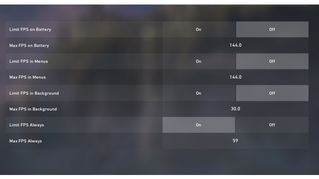 In order to limit your frame rate, head on over to Settings and then Video. Select ‘Limit FPS Always,’ and then set the frame rate to below 60 FPS (59 FPS should do the trick). This will ensure that Valorant isn’t always trying to hit its max FPS, making it easier to run for your PC and reducing the likelihood of a crash.
