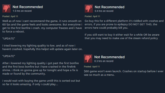 Hundreds of PC gamers are reporting that Dark Souls 3's PC version crashes shortly after making a character. The issue appears to happen frequently, enough that it prevents proper progress for most players affected by the issue.