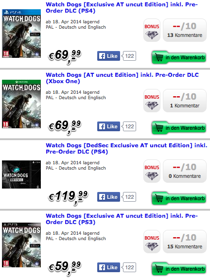 Watch Dogs will launch on April 18th, according to retailer Gamesonly.