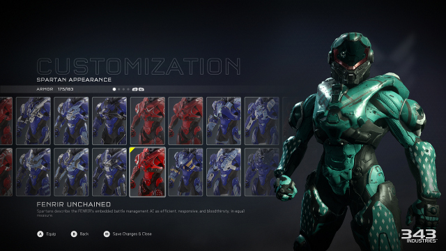 There are hundreds of items to unlock that allow you to personalize your appearance. Above is the Fenrir Unchained armor, which like others can have its color scheme and helmet customized.