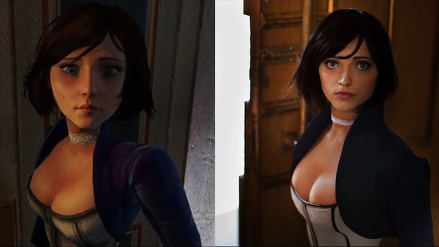 Perhaps the most intriguing aspect of Columbia is the prisoner it holds captive. Irrational Games spent a lot of time creating Elizabeth's character. Her design has been tweaked throughout development—and emulated by a multitude of cosplayers. In fact, the studio ended up hiring one particularly impressive cosplayer to be the official face of Elizabeth. The two bear an awfully striking resemblance, no?