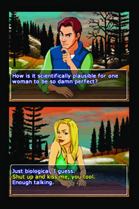 Right – provided you are playing Ubisoft’s latest DS entry, an innuendo-fest called Sprung. Part bad dating sim, part Choose Your Own Adventure book and absolutely no part game, this curious piece of misdirection is about as sexy as a blind date with your mom.