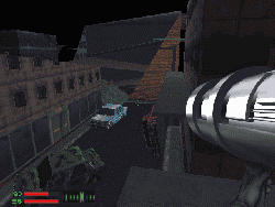 In most first person games, you’re enclosed in a dungeon, movie theater, or a castle, but in SkyNET, you adventure through places as diverse as the streets of Los Angeles, submarines, deserts, missile silos, and deserted highways. By using Bethesda’s new XnGine, the environments are realistically drawn in either low 320×200 resolution, or the beautiful high 640×480 resolution.