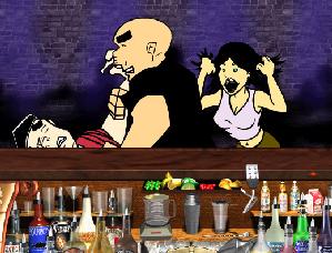 people who come up to the bar are all cartoony and stuff. There’s these guys,