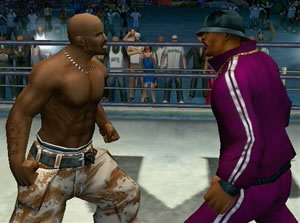The game was developed by Aki (who have done a few other wrestling games) under the EA Big umbrella, the same studio that brought us such sweet gaming crack as the SSX games and NBA Street. But while those titles were chock full of interesting gameplay ideas, this one is basically just a hip-hop version of any decent wrestler.
