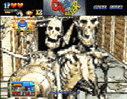 Crypt Killer is the latest arcade import from Konami. It’s a gun shooter, so you will also need to buy the Konami ‘Justifier’, or another light gun (unless you already have one). Unfortunately, Crypt Killer doesn’t justify the purchase of a ‘Justifier’ or anything else for that matter. The graphics and gameplay have both suffered terribly in the translation.