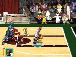 As far as features, the game has all the Looney Toons and MonStars from the movie ( though adding the little fat guy from Jurassic Park would’ve been nice), and even gimpy stats like “pushes”. There is an interesting sub-feature to play (what else?!) sub-levels for power-ups, practice, or (here’s one) “pure fun”. The sub-levels are mildly entertaining, but I wouldn’t go so far as to call them a bright spot-more like the shiny spot on an old, rusty nail. You can enter a tournament to save Michael and the rest of the NBA All-Stars, AND you can convert the controller to any buttons of your choosing! The game just sadly has no depth. Little things like substitions, real stats and more teams would have helped (you might be starting to form a picture…). I can’t believe Acclaim went out and rehashed that played out NBA Jam engine and expected it to sell (is that picture getting any clearer now…?) The game really has no worth other than as one of those disappointing rentals you seem to make every now and then, and oh, Michael Jordan.