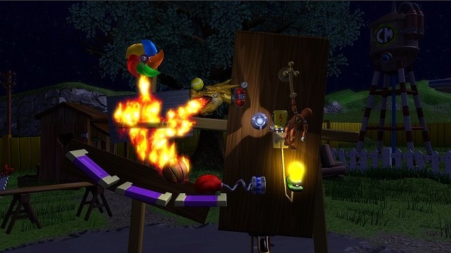 If you grew up playing The Incredible Machine in your elementary school's computer lab, you were missing out on the clearly superior “Toon” version, which totally left my eyes bloodshot anytime I sat down to play it as a wee lad due to its psychotic art direction. Aside from that, though, Crazy Machines Elements will immediately feel familiar to you as an update to this formula. The concept involves elaborate chain-reaction puzzles that have had some of their pieces plucked out, leaving the player tasked with placing various objects in the correct locations in order to see the 'machine' play itself out completely.
