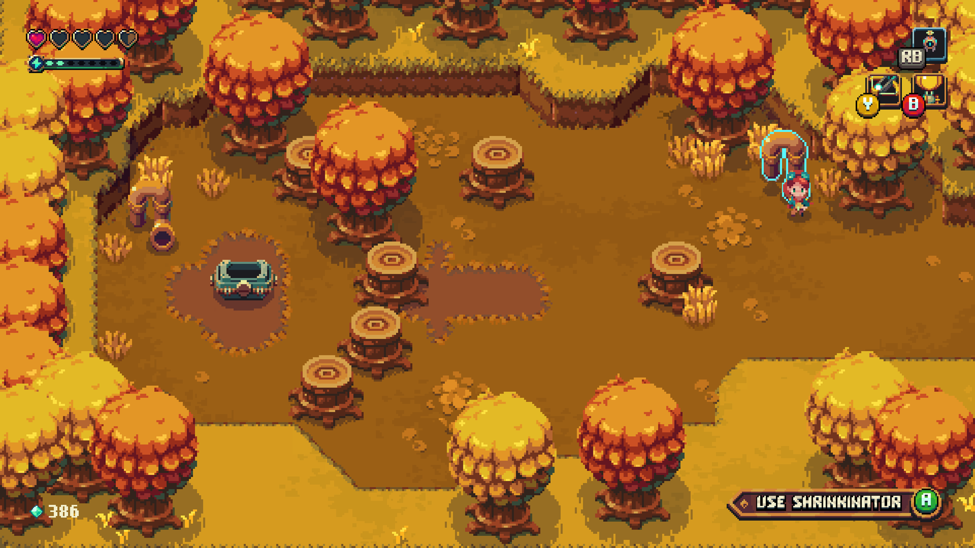 Sparklite is grindy and beats players down in an attempt to intrigue them. If this giant troll kills you in two hits, maybe you’ll want to grind currency to get stronger. If you have limited room on your wrench for upgrades, you might want to grind currency to get it bigger. It’s similar to how other games operate, but nothing about the grinding is enjoyable. It’s a chore, and it’s what you’re doing for the vast majority of the experience. There are no character upgrades during your run, no fun weapons to find, and no novel mechanics. It’s just the same mashing you’ve done since the 16-bit days, only with a map that constantly shifts under your feet.